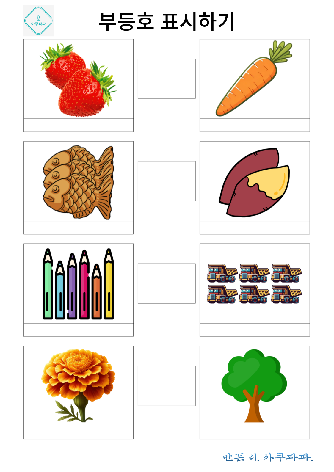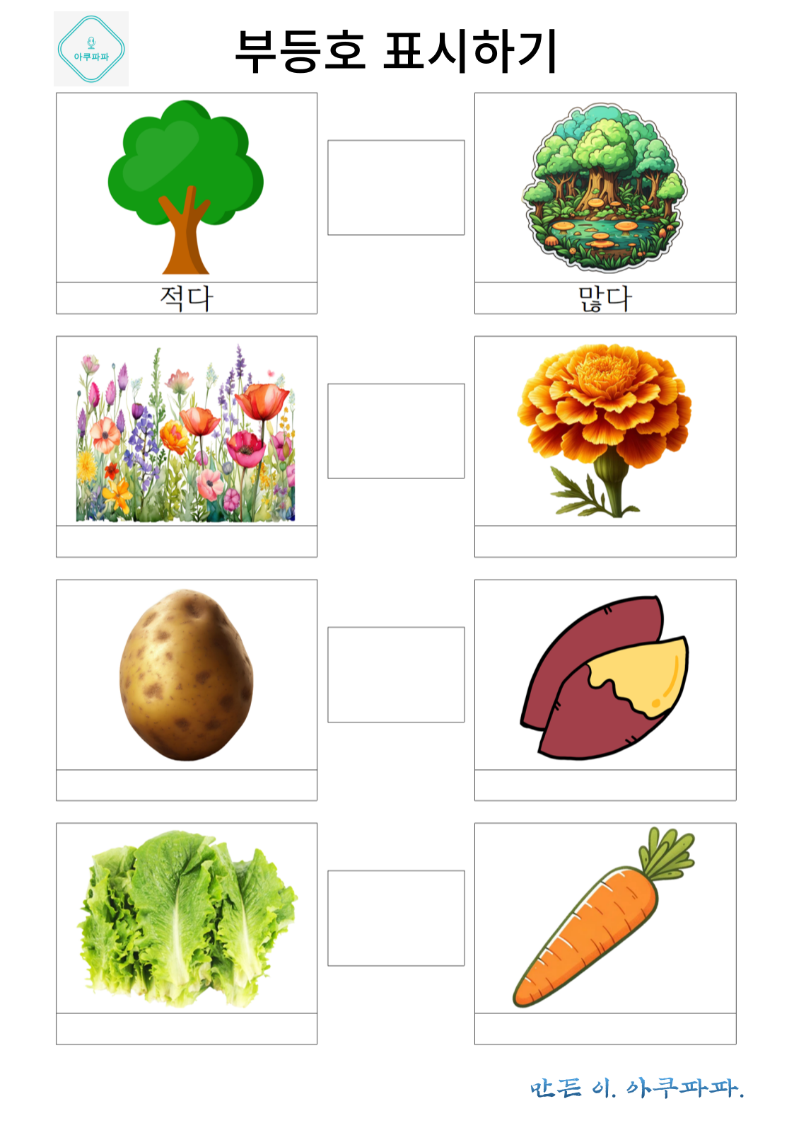 몇개인지 갯수를 적거나, 많다 혹은 적다 글씨를 쓰거나 편하게 사용하며 재밌게 해보세요.