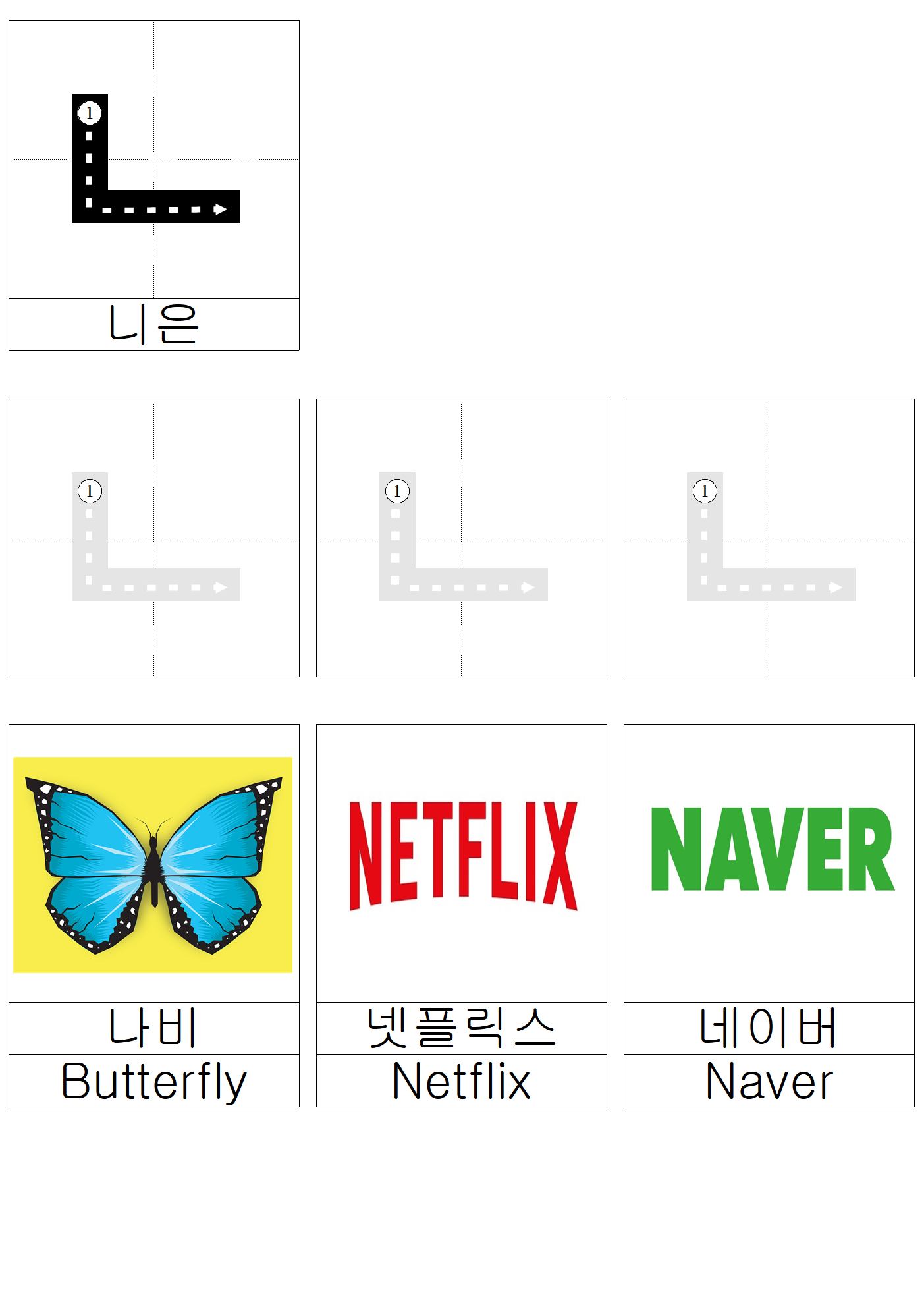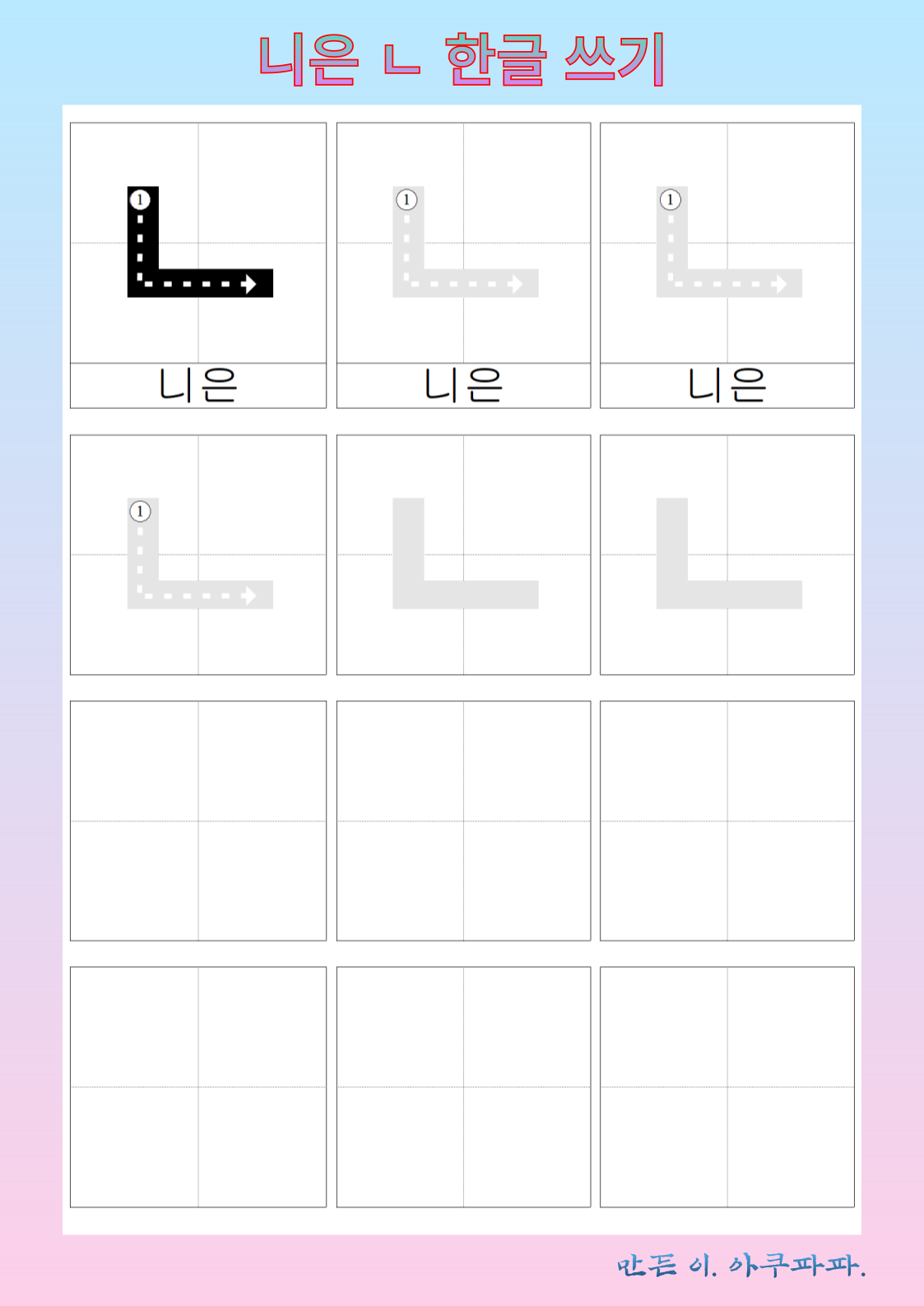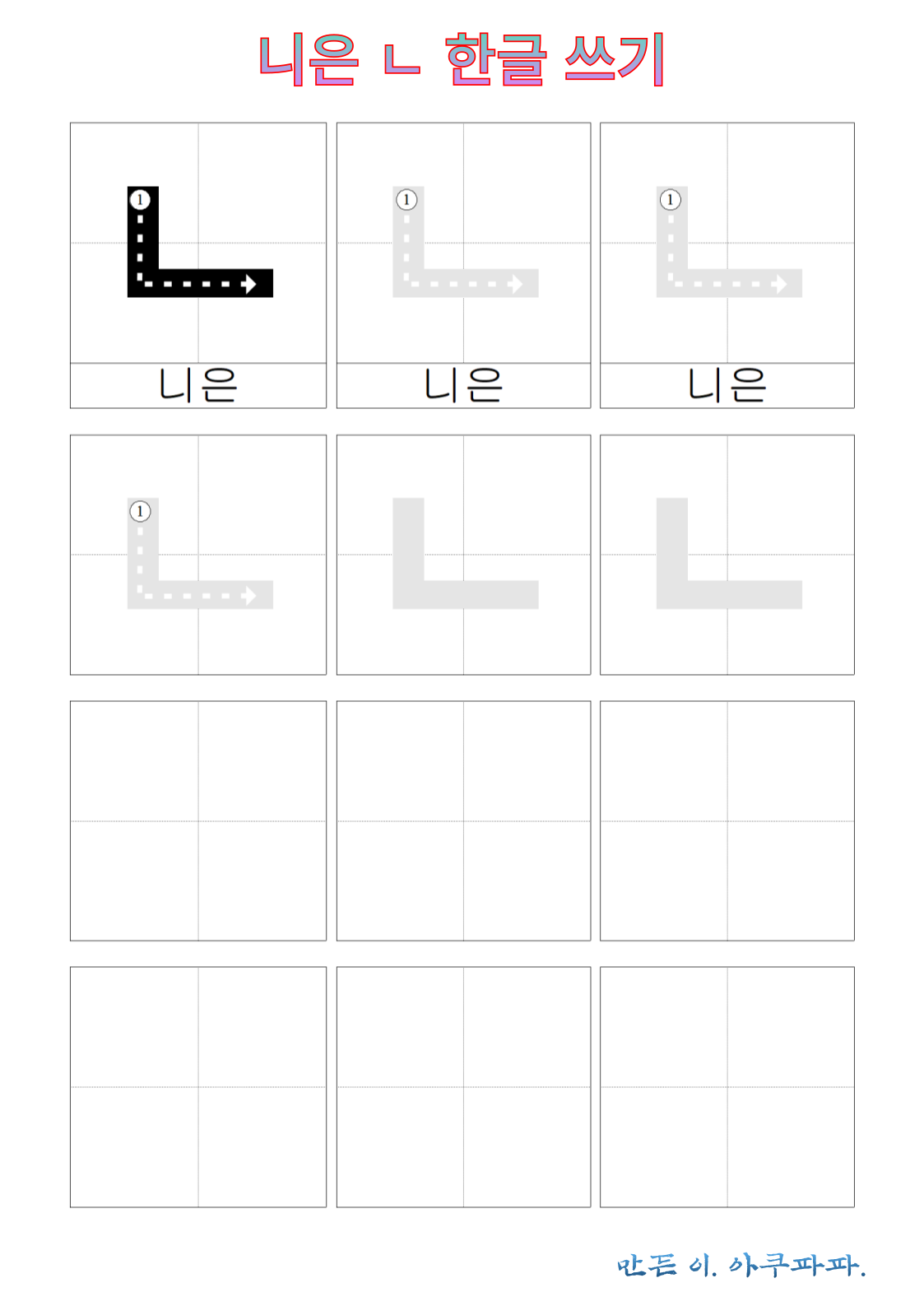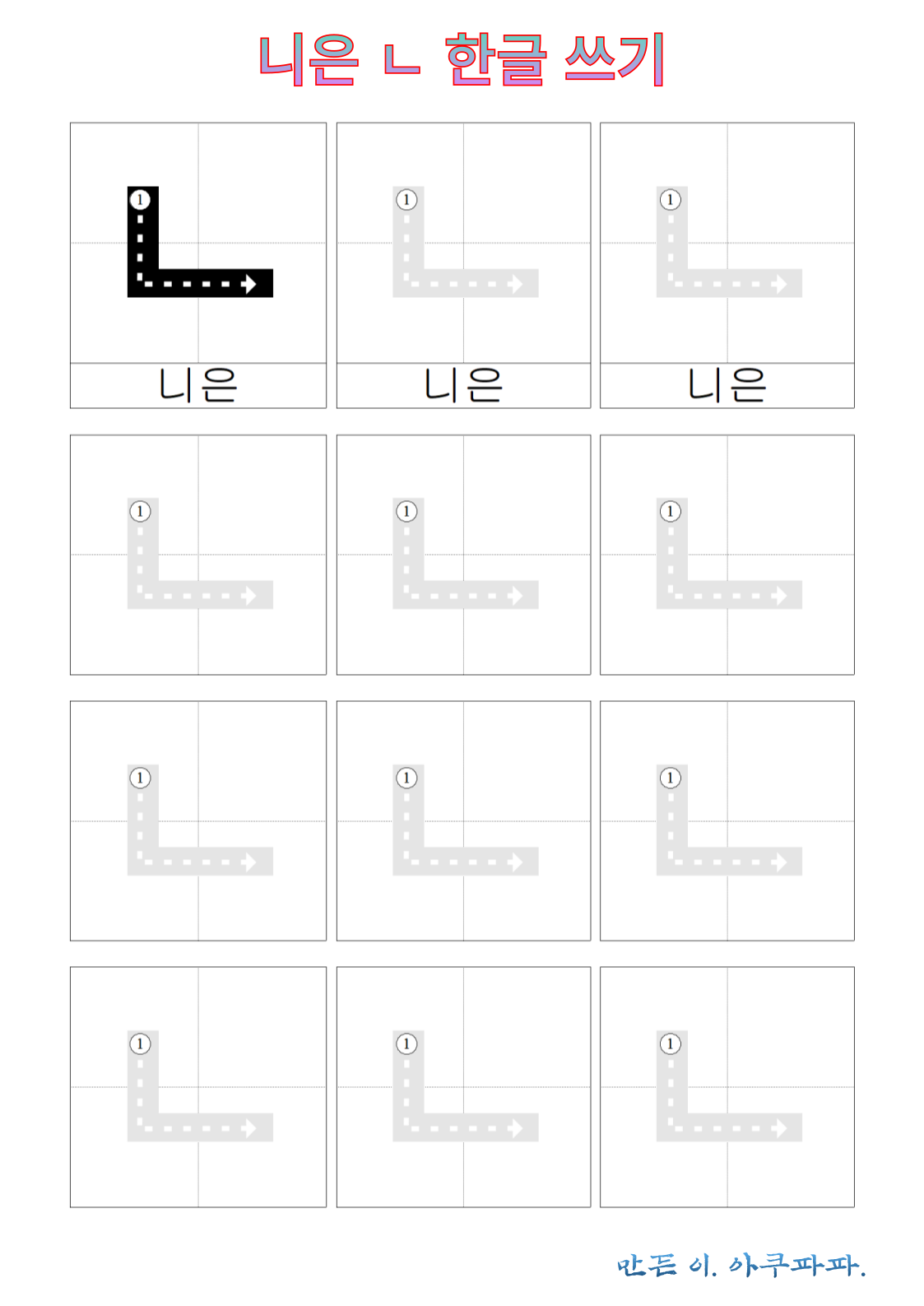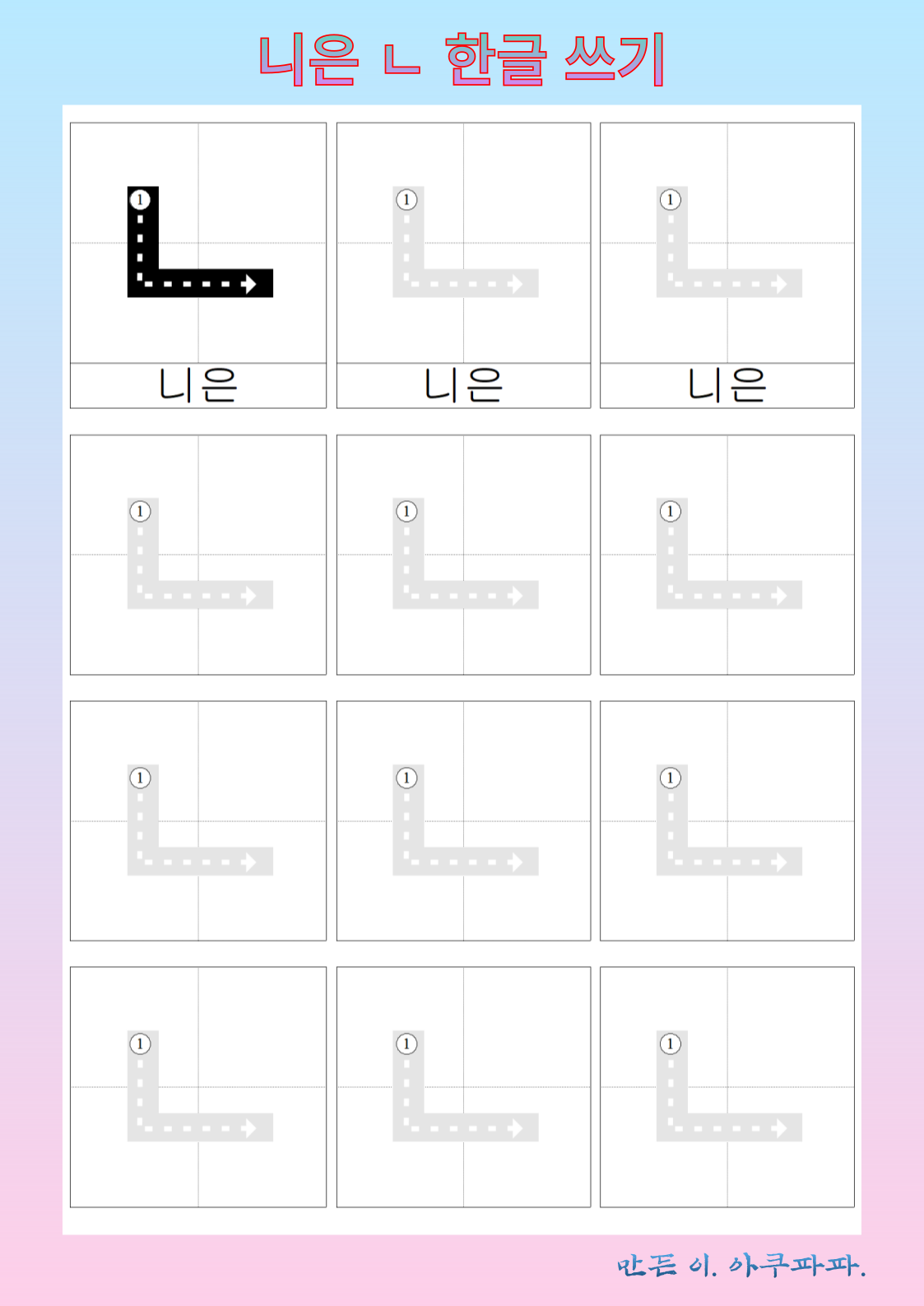 니은 따라 쓰기
