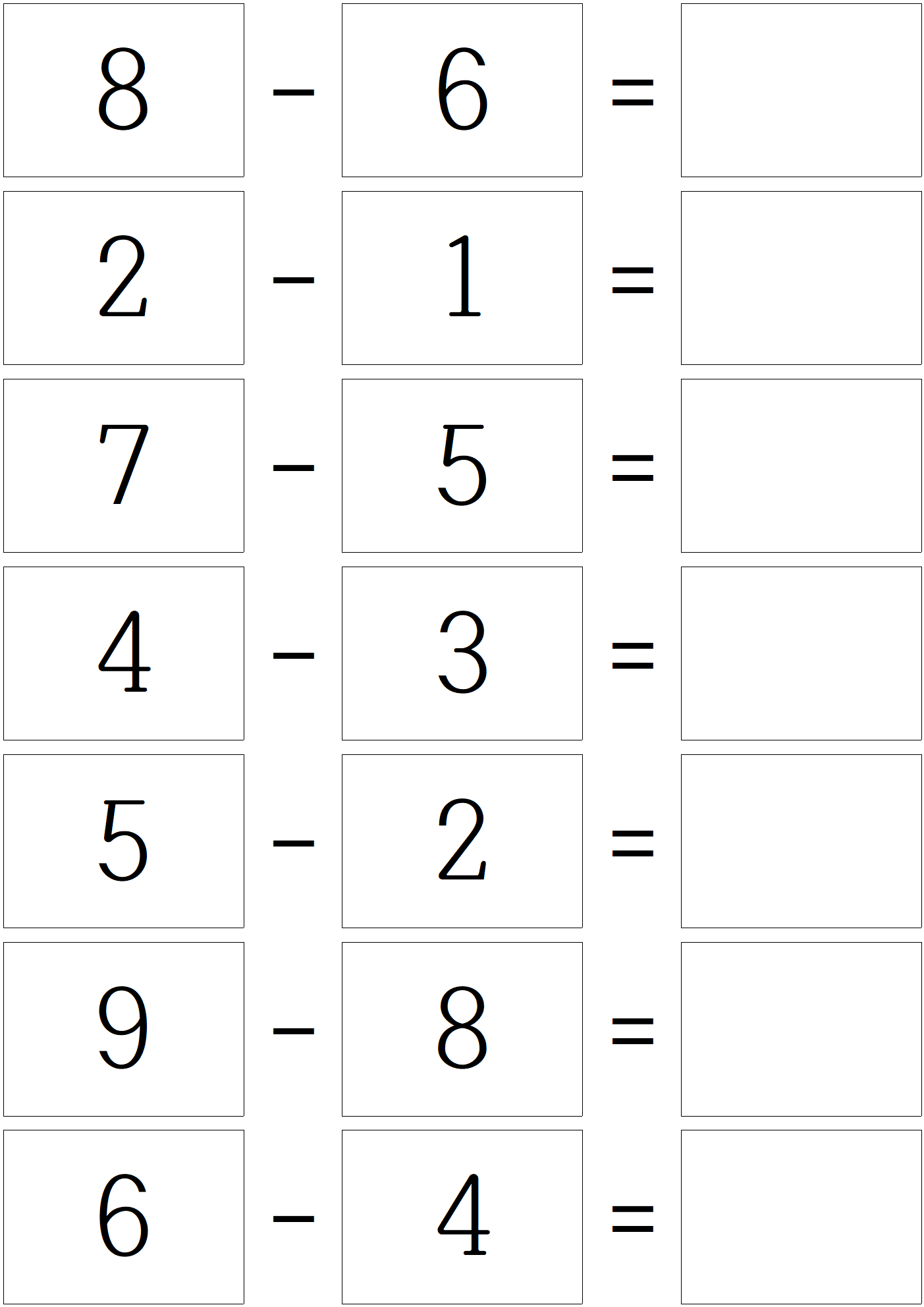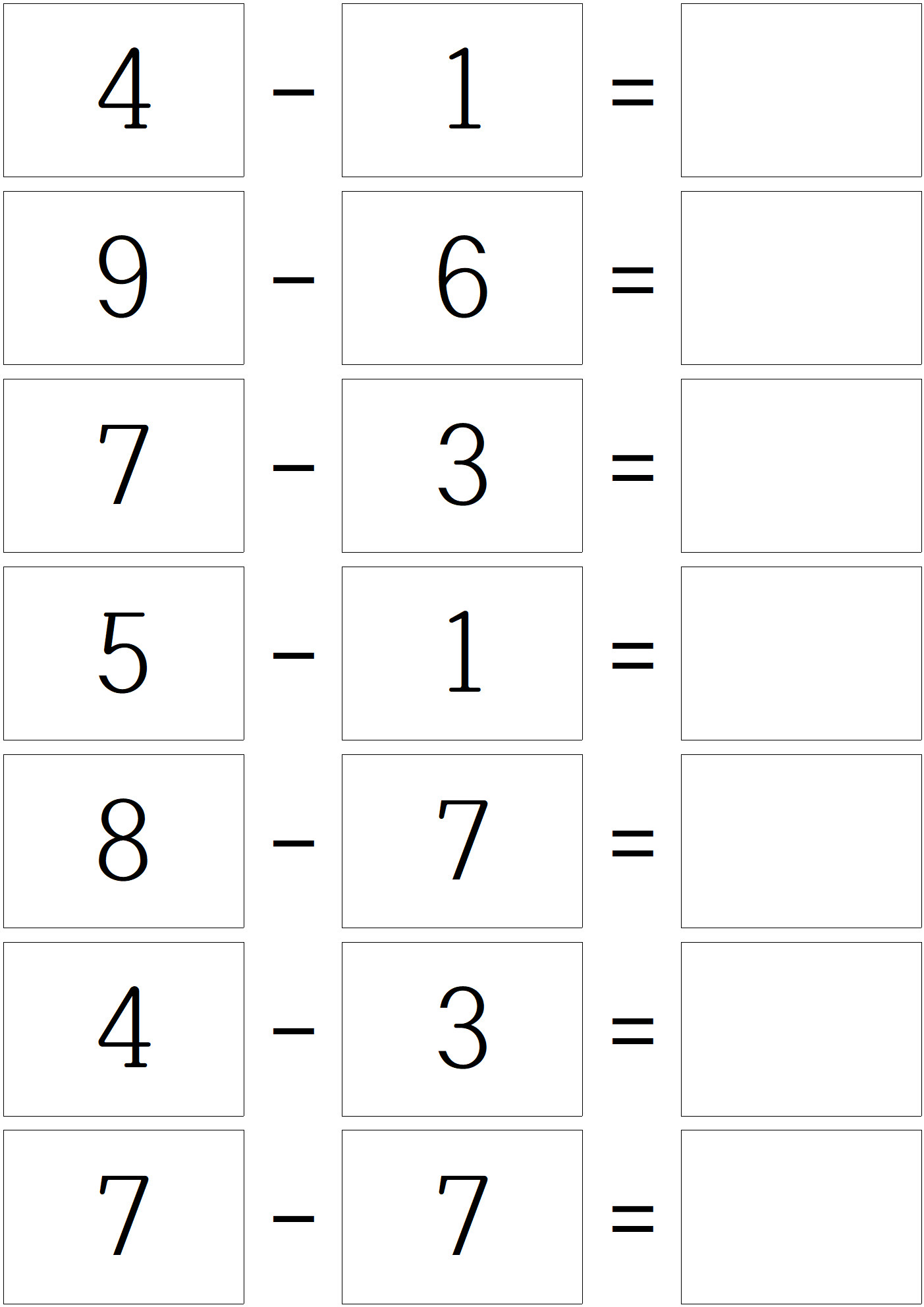 덧셈 문제를 풀고, 이제 한자릿 수 뺄셈 문제 입니다.