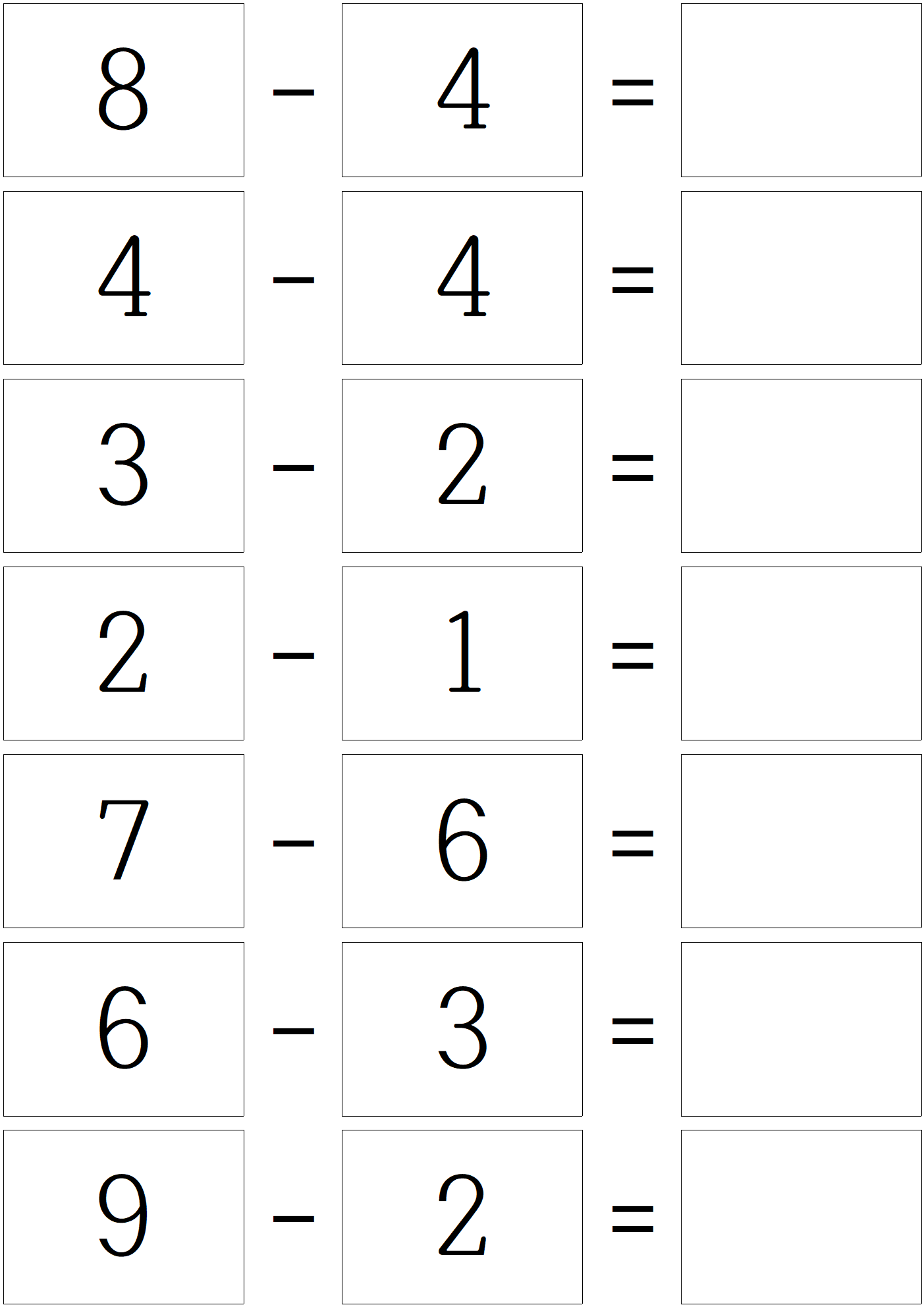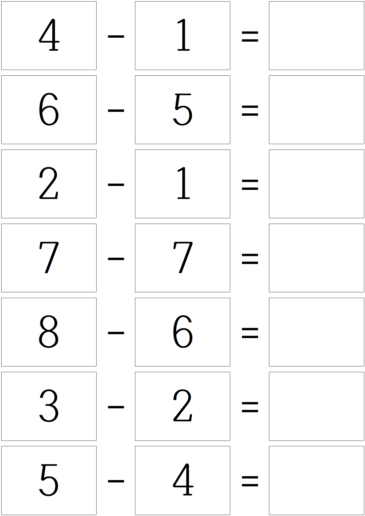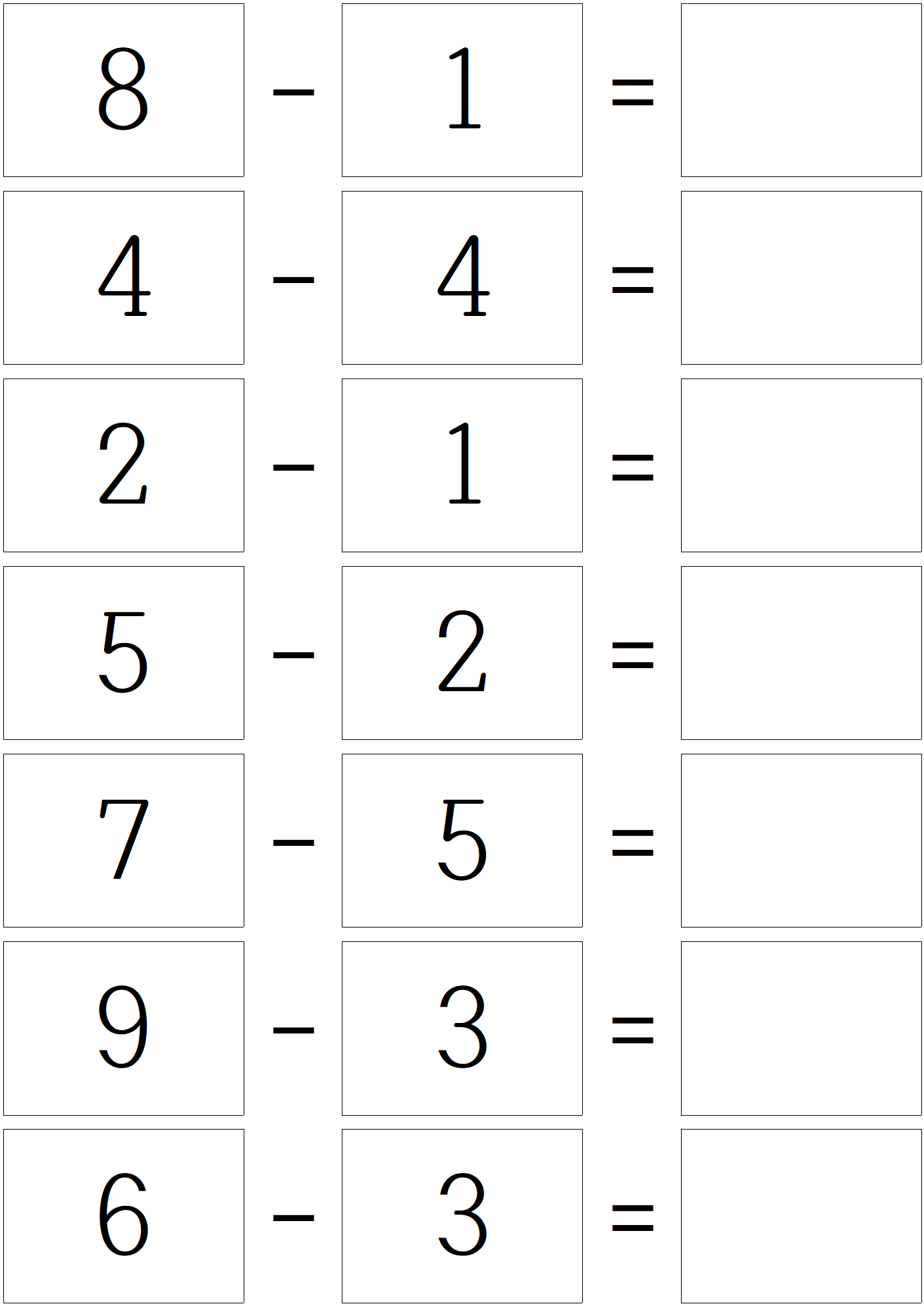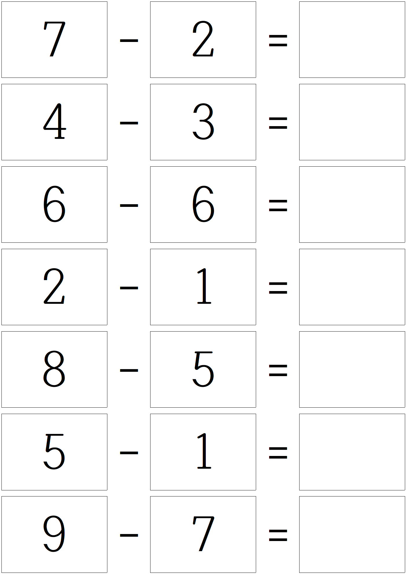 덧셈 문제를 풀고, 이제 한자릿 수 뺄셈 문제 입니다.