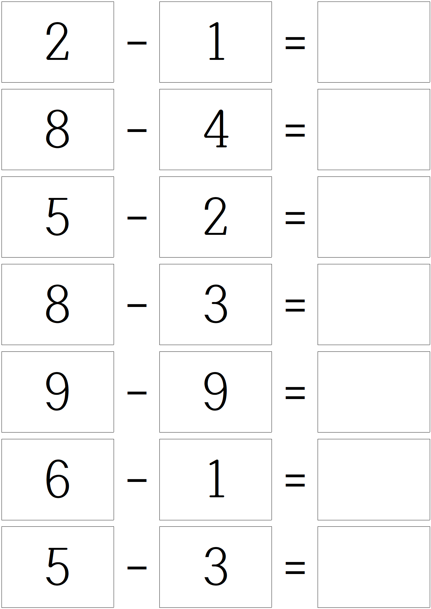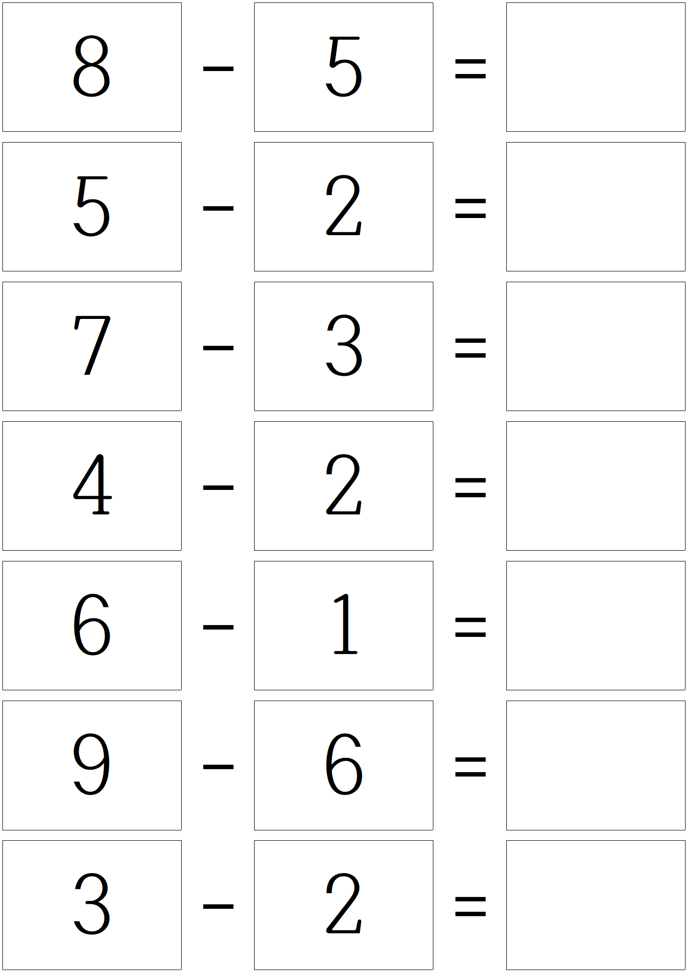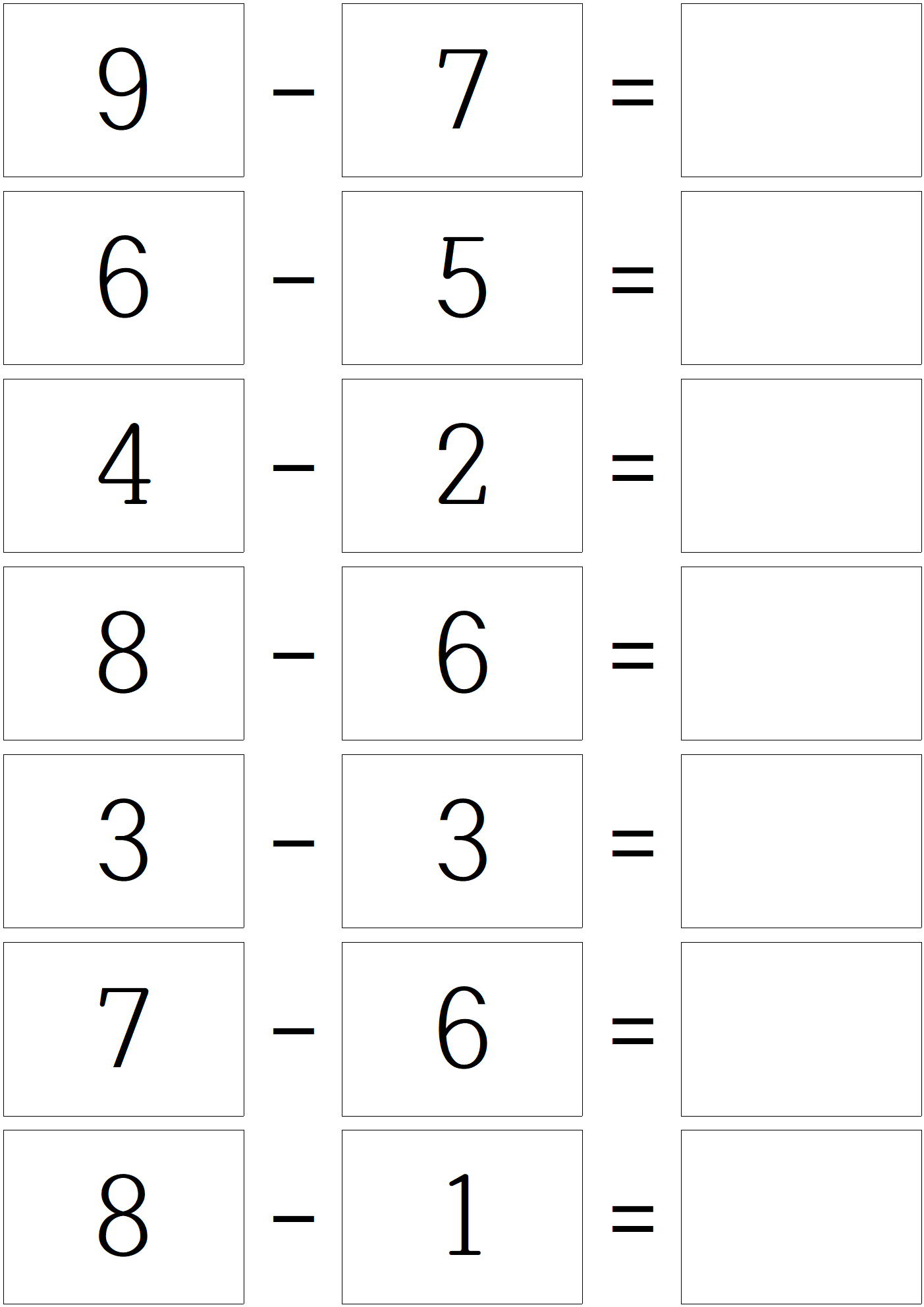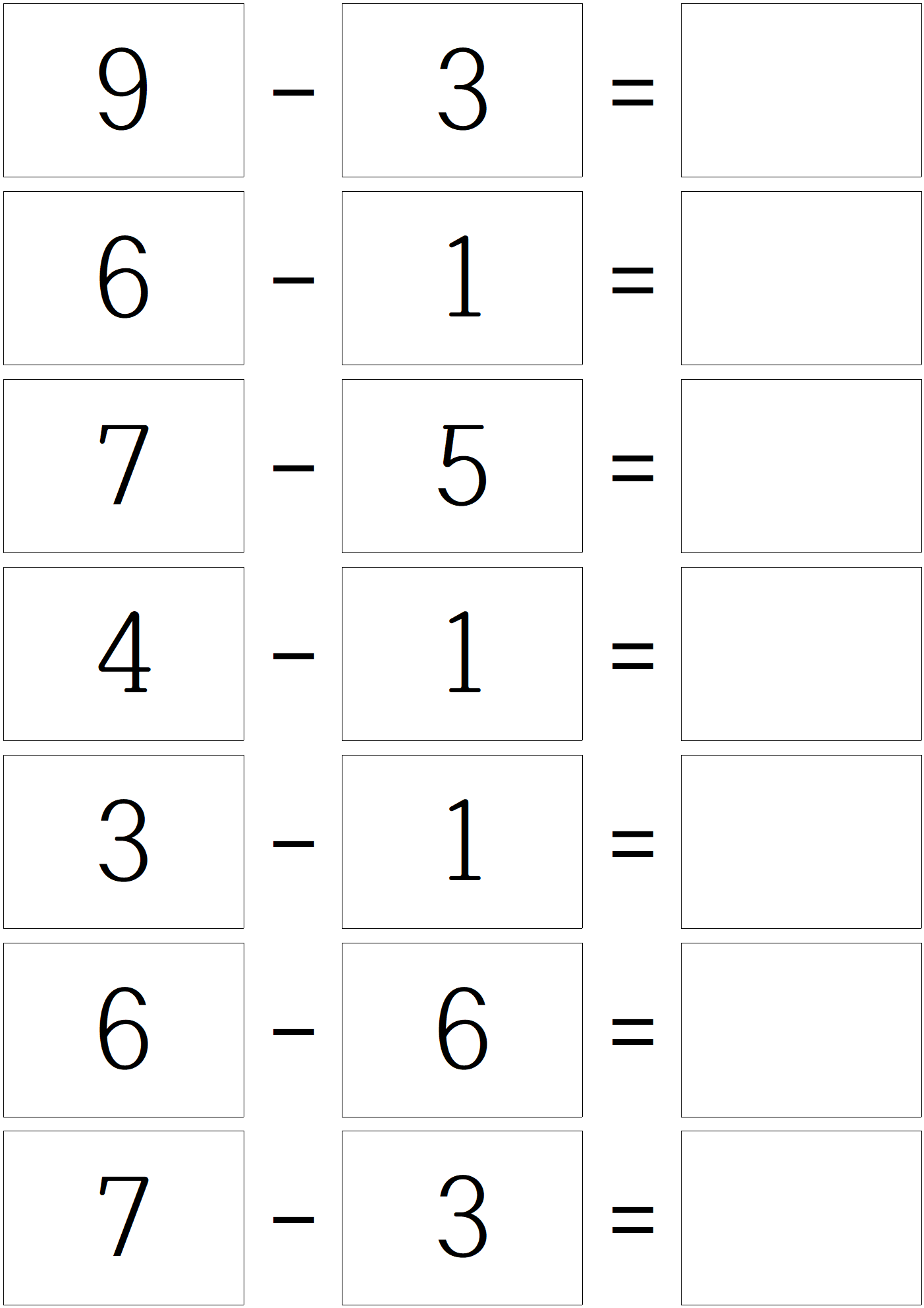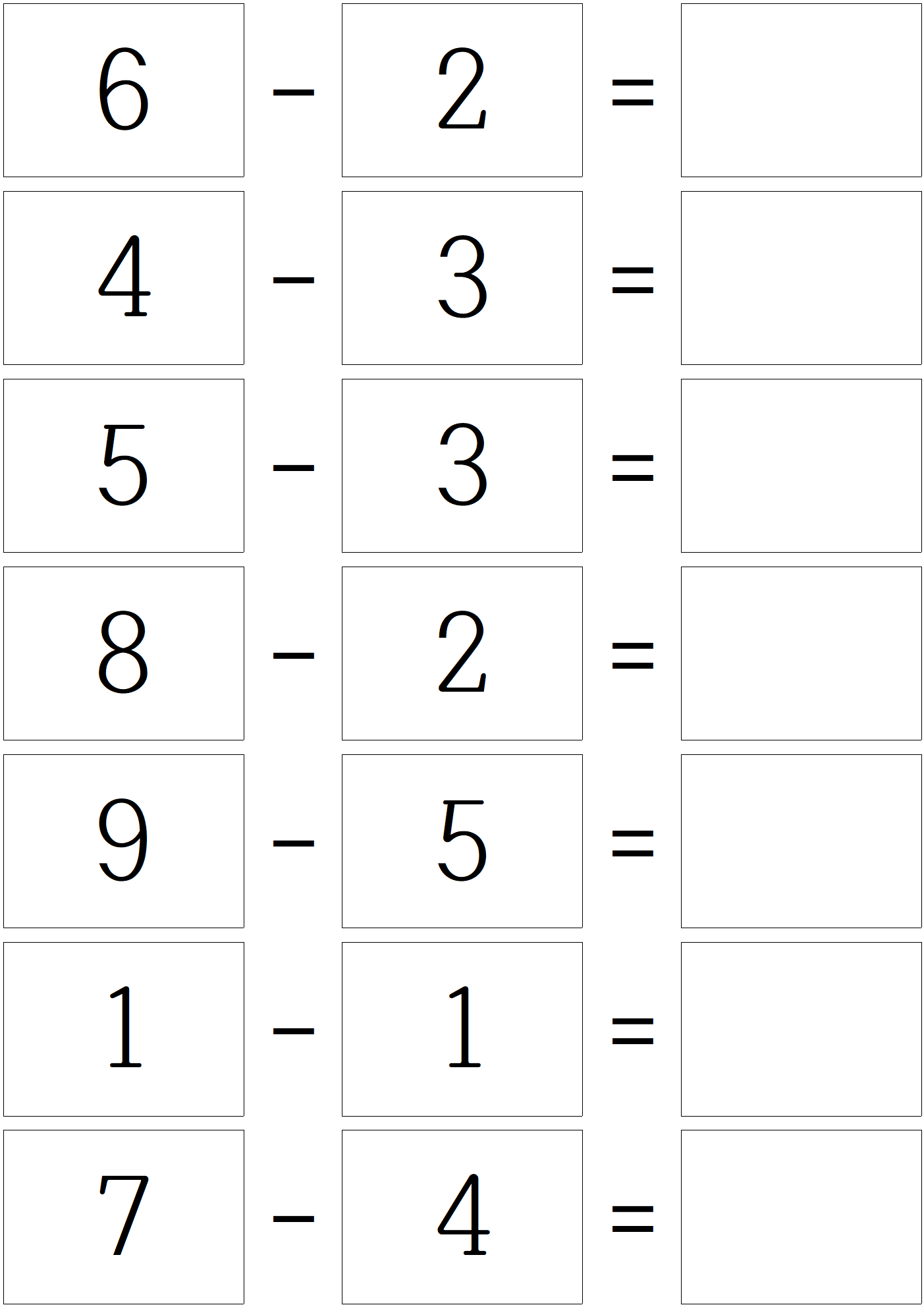 덧셈 문제를 풀고, 이제 한자릿 수 뺄셈 문제 입니다.