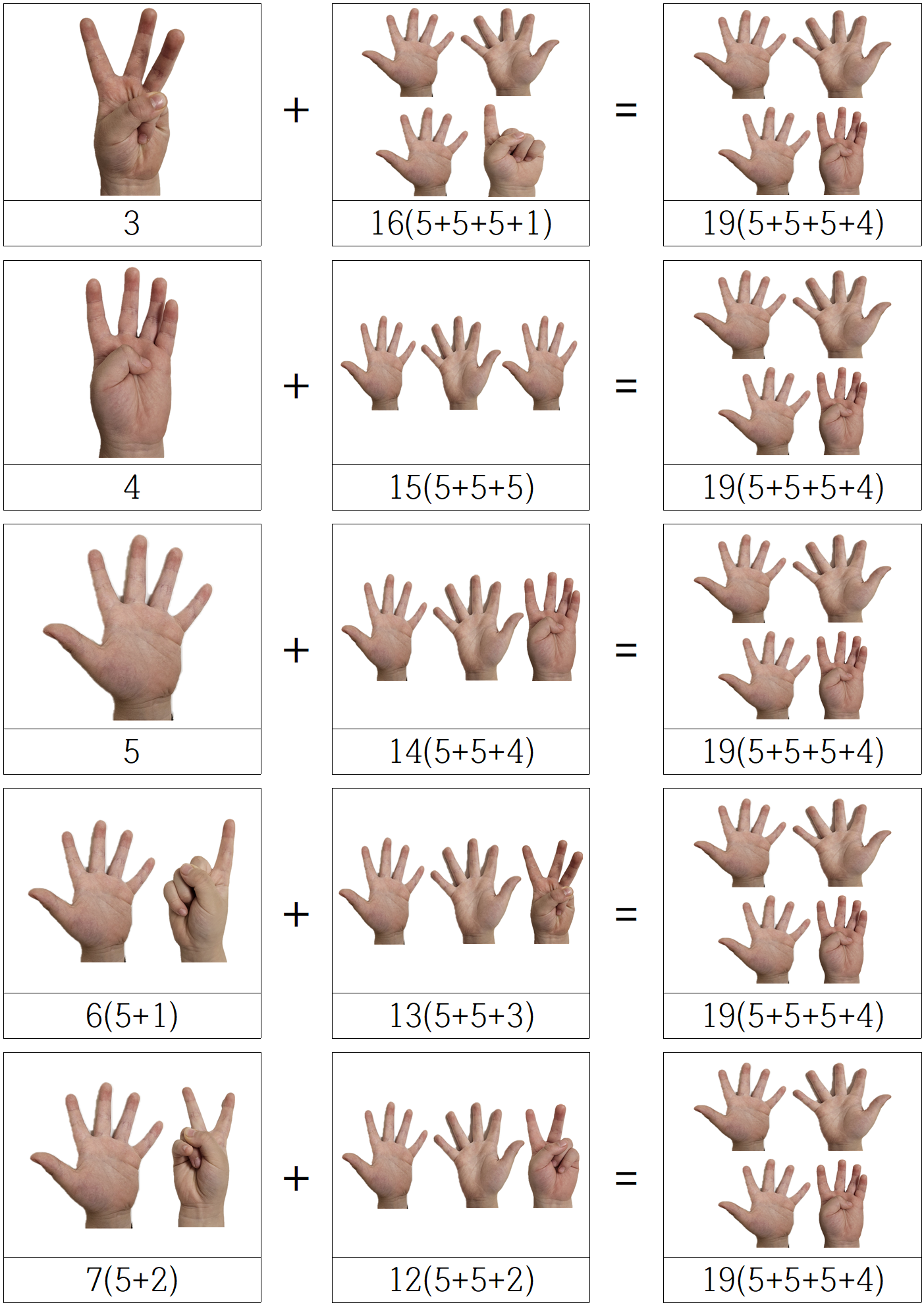 1+10, 10+1 은 가장 쉬운 셈이라면 그 외에 10보다 작은 9, 8, 7, 6 .. 등