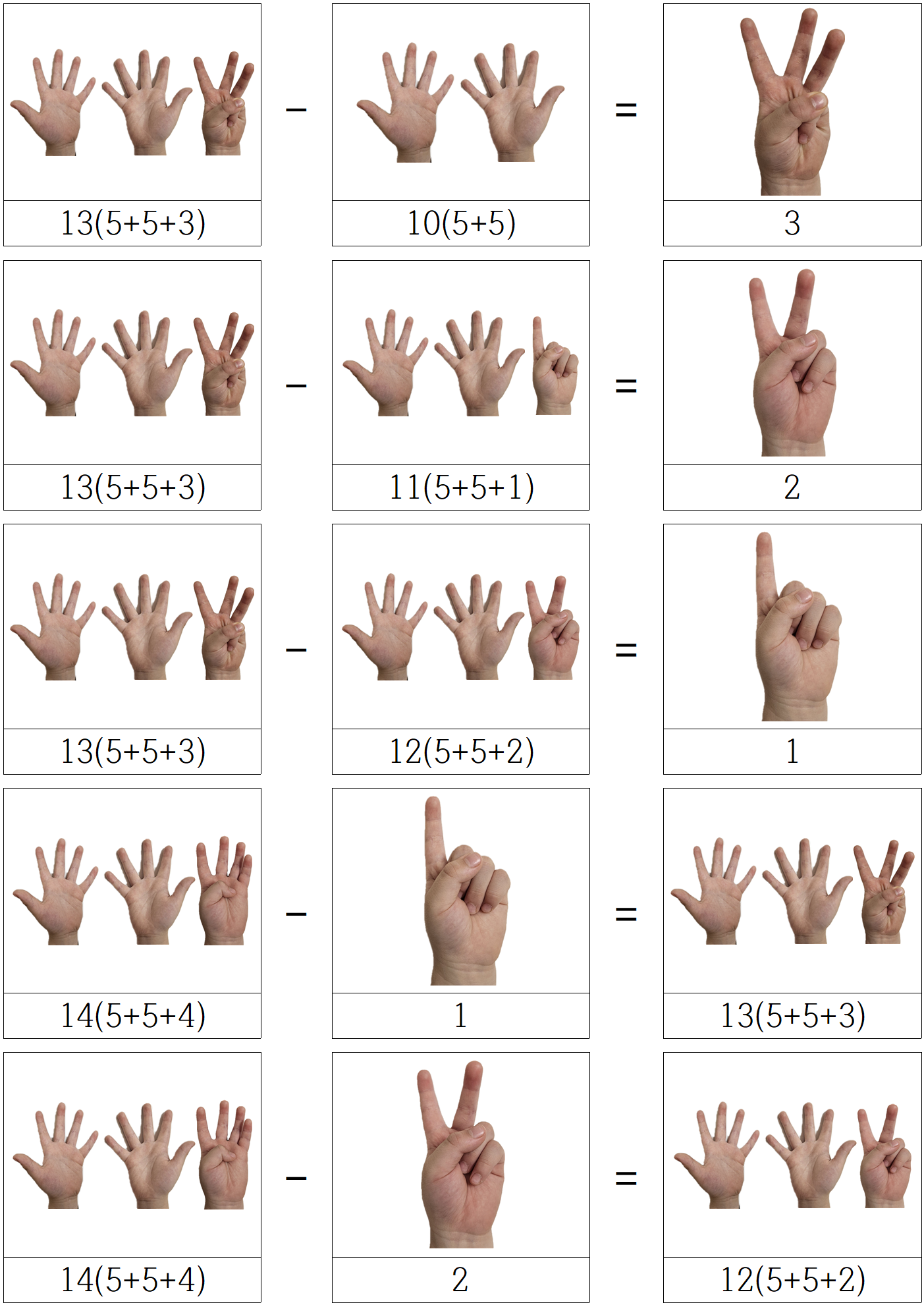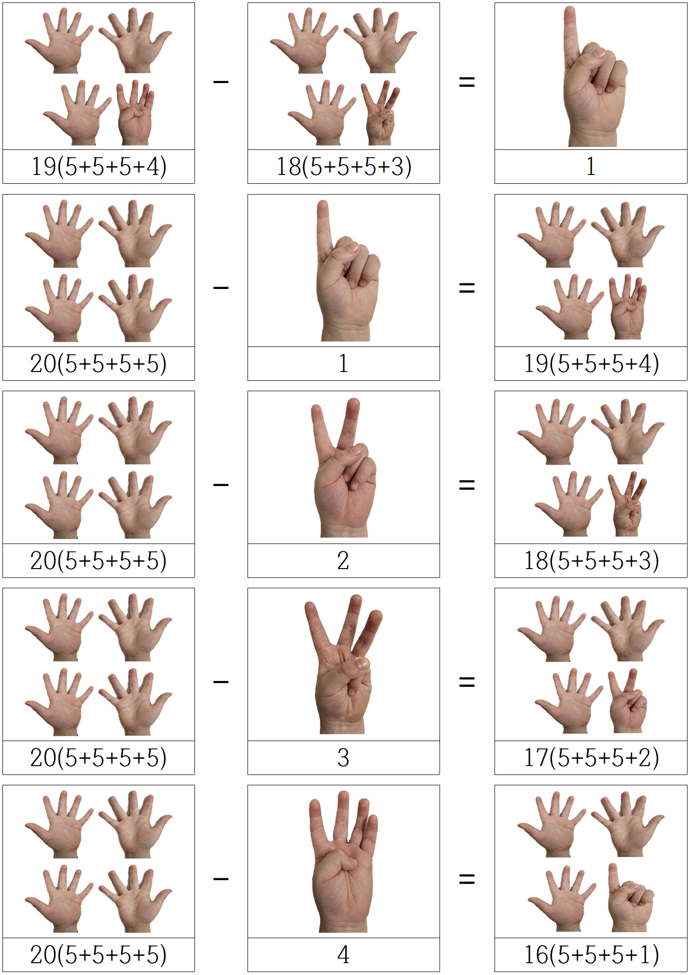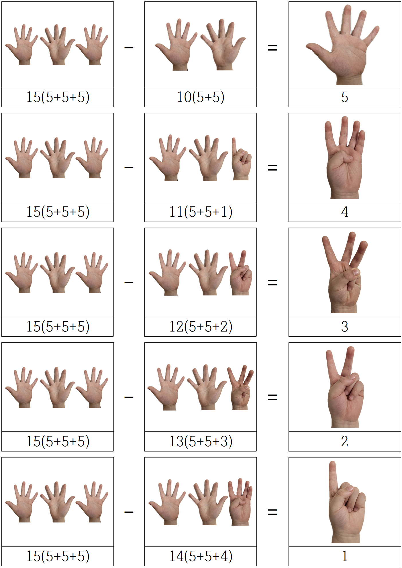 아이들은 처음엔 이게 뭐지? 싶겠지만, 손가락을 폈다 접었다 하며 결국 같은 값 임을,