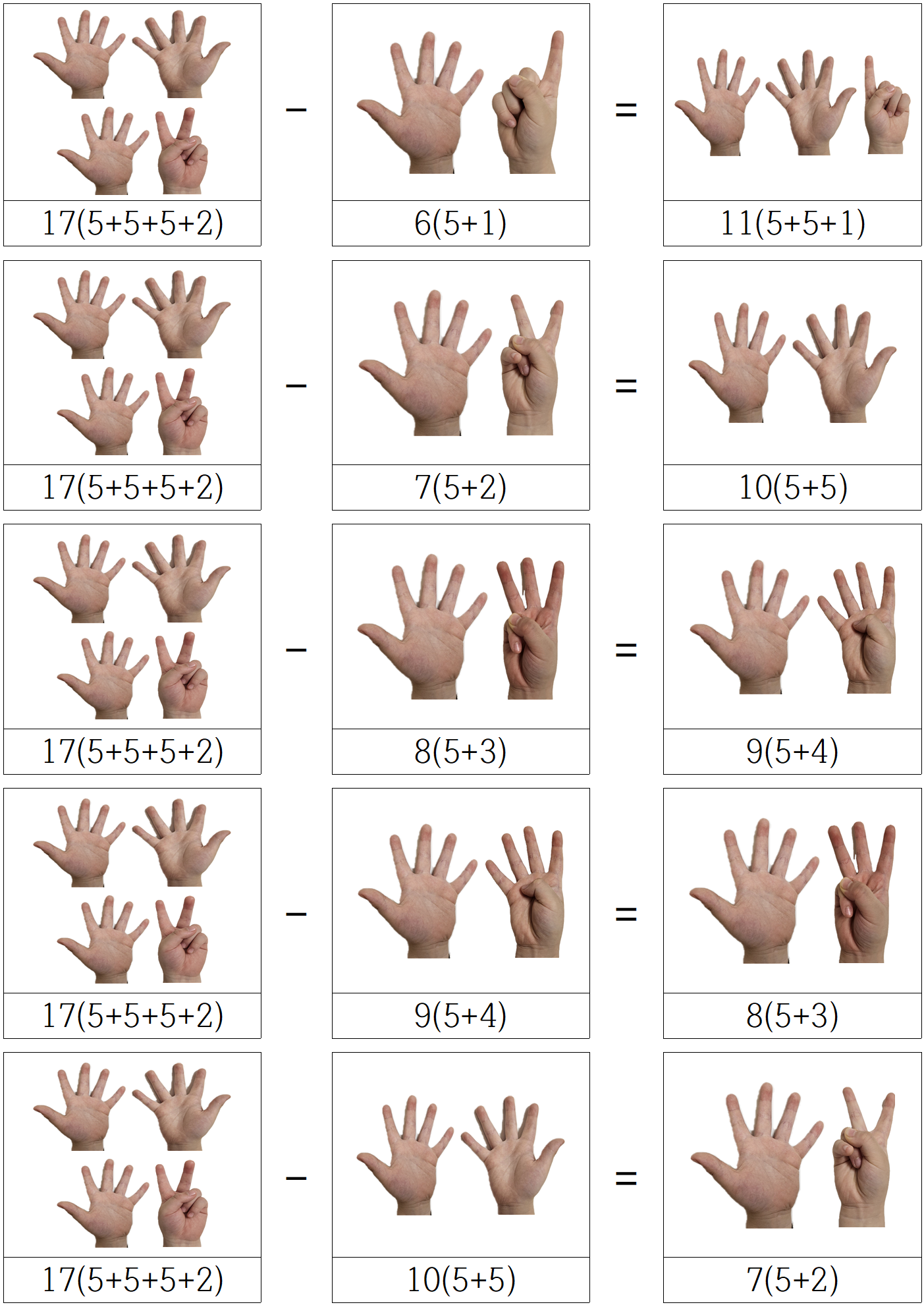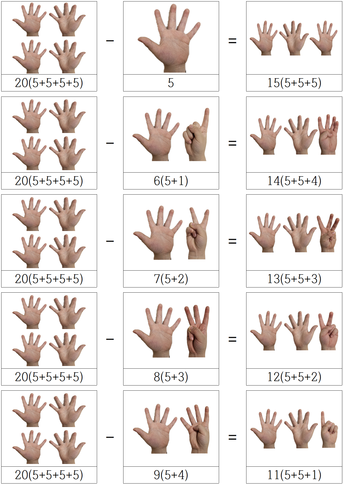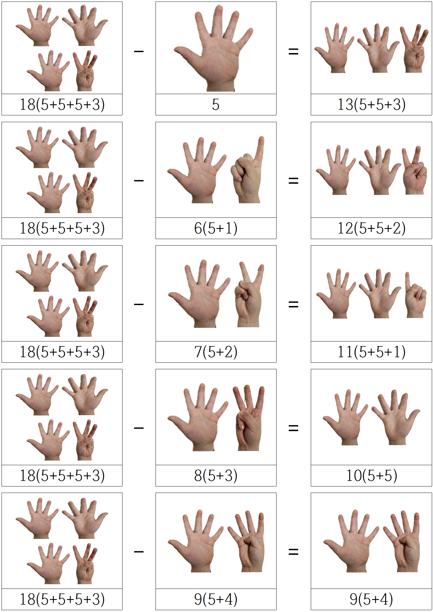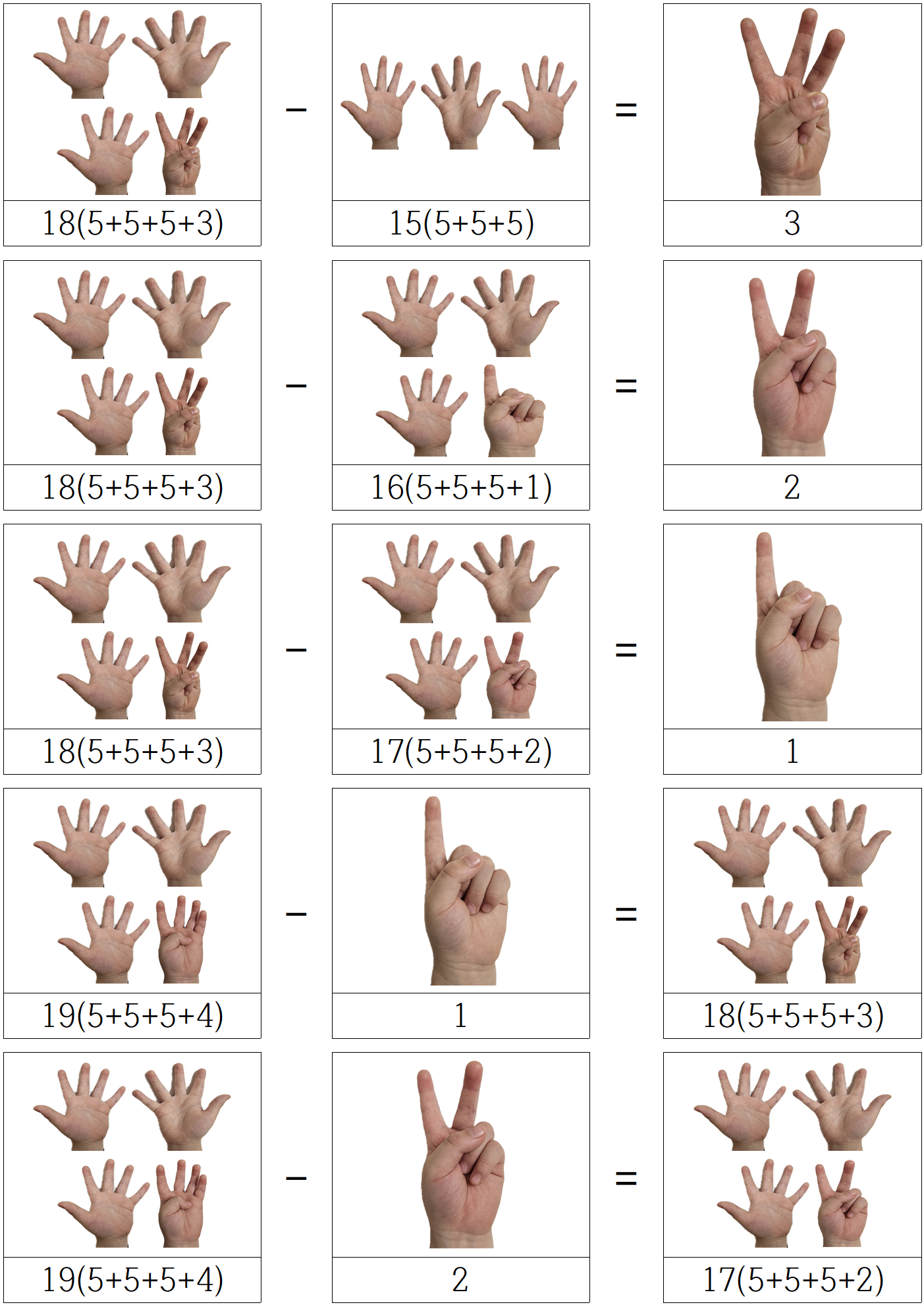 아이들은 처음엔 이게 뭐지? 싶겠지만, 손가락을 폈다 접었다 하며 결국 같은 값 임을,