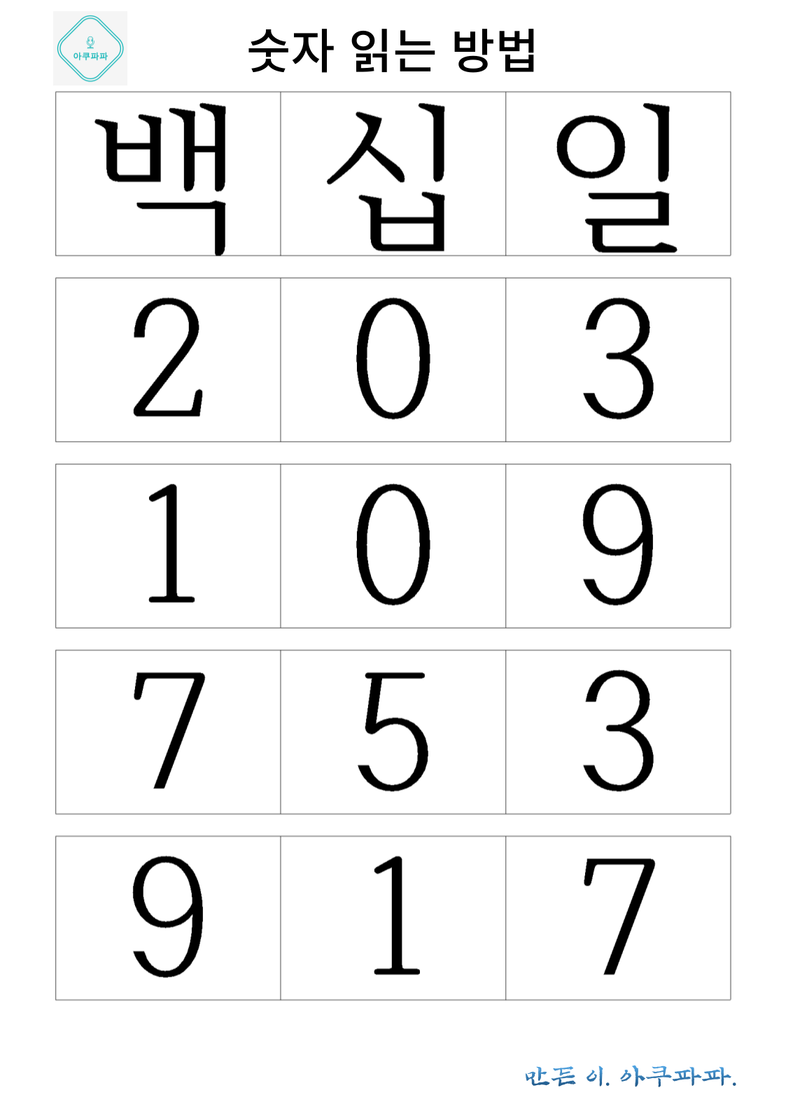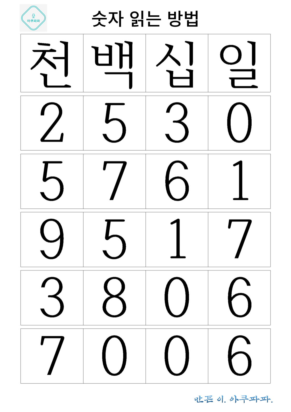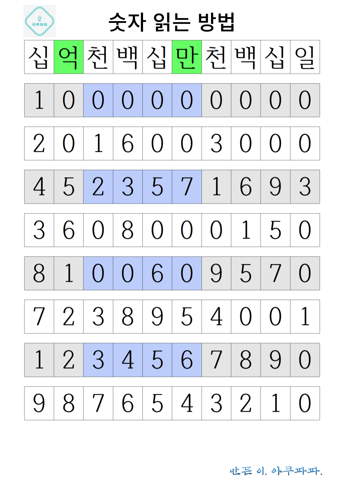 숫자 읽는 방법 배우기